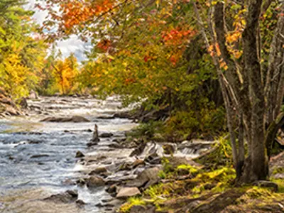 A pleasant network of trails and footbridges follows the course of the Mississippi River as it rushes through a series of rapids and falls at Blakeney. In early spring it’s a popular destination for whitewater kayakers, as it reaches Class IV in the degree of difficulty. Visitors and locals enjoy swimming, fishing, kayaking, walking and having picnics along the river.