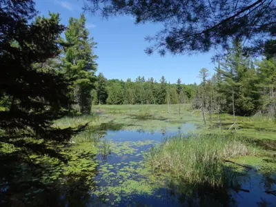The complex includes a trail through a small woodlot into the Al Potvin observation tower that overlooks the north end of the lagoon. From there a trail runs 150 m east to the Mike McPhail Bird Viewing Shelter that overlooks the east side of the lagoon. During the spring and fall, the lagoon features many hundreds of duck and other migrating shore birds resting and feeding.