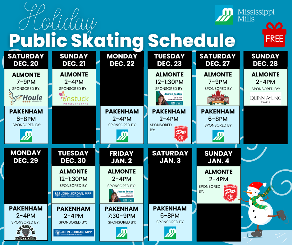 Email programs@mississippimills.ca to sponsor a skate today!