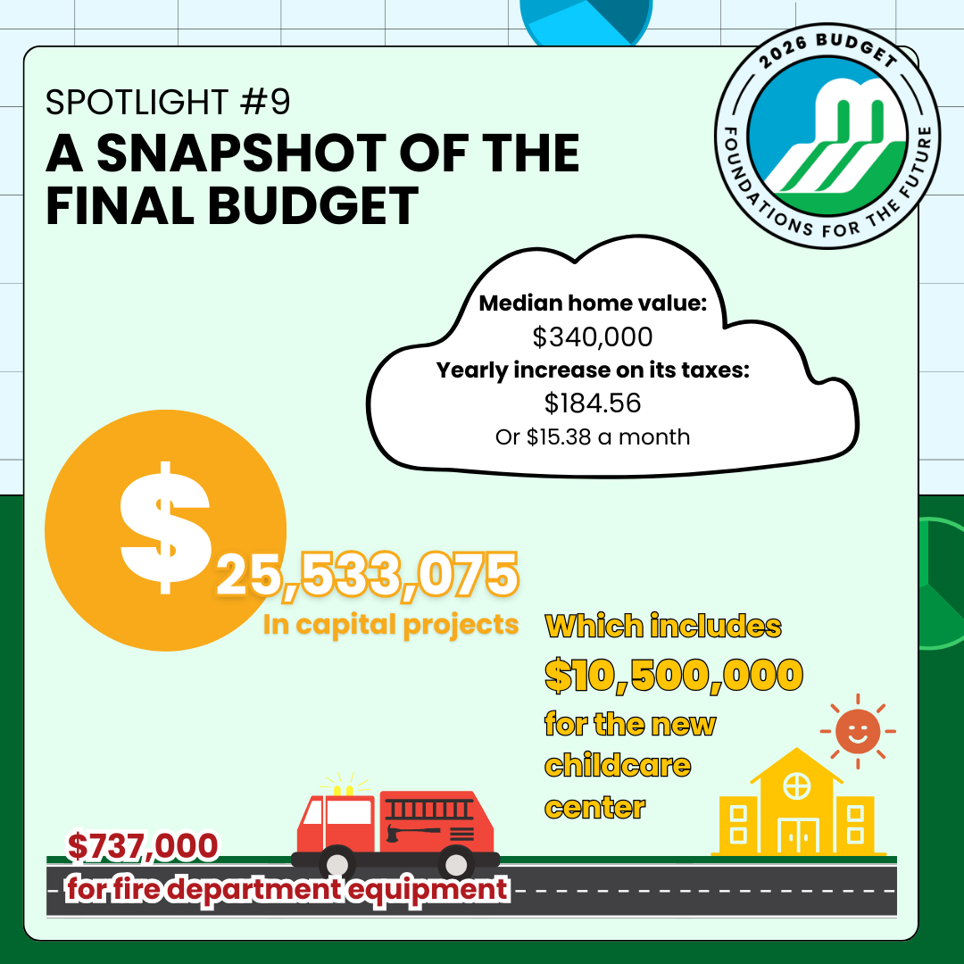 This year’s budget is rooted in years of community-driven planning, including the MM2048 master planning process and the updated Long Term Financial Plan. Together, these plans highlight the scale of upcoming challenges: $171 million in required capital investments over the next five years, and $643 million over the next 25. These needs far exceed the Municipality’s current borrowing capacity. The 2026 budget begins closing that gap by prioritizing core infrastructure and making it easier for residents to see how their tax dollars support long-term community priorities.
