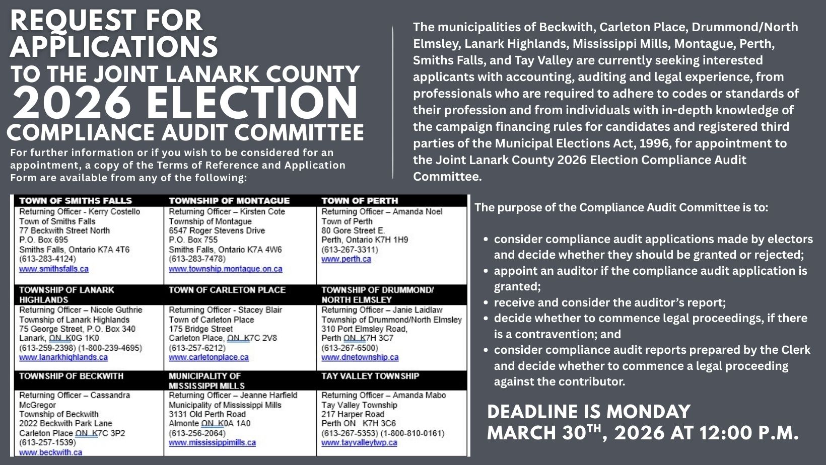 APPLICATIONS NOW OPEN - Deadline to apply: Monday, March 30, 2026 at 12 p.m.
