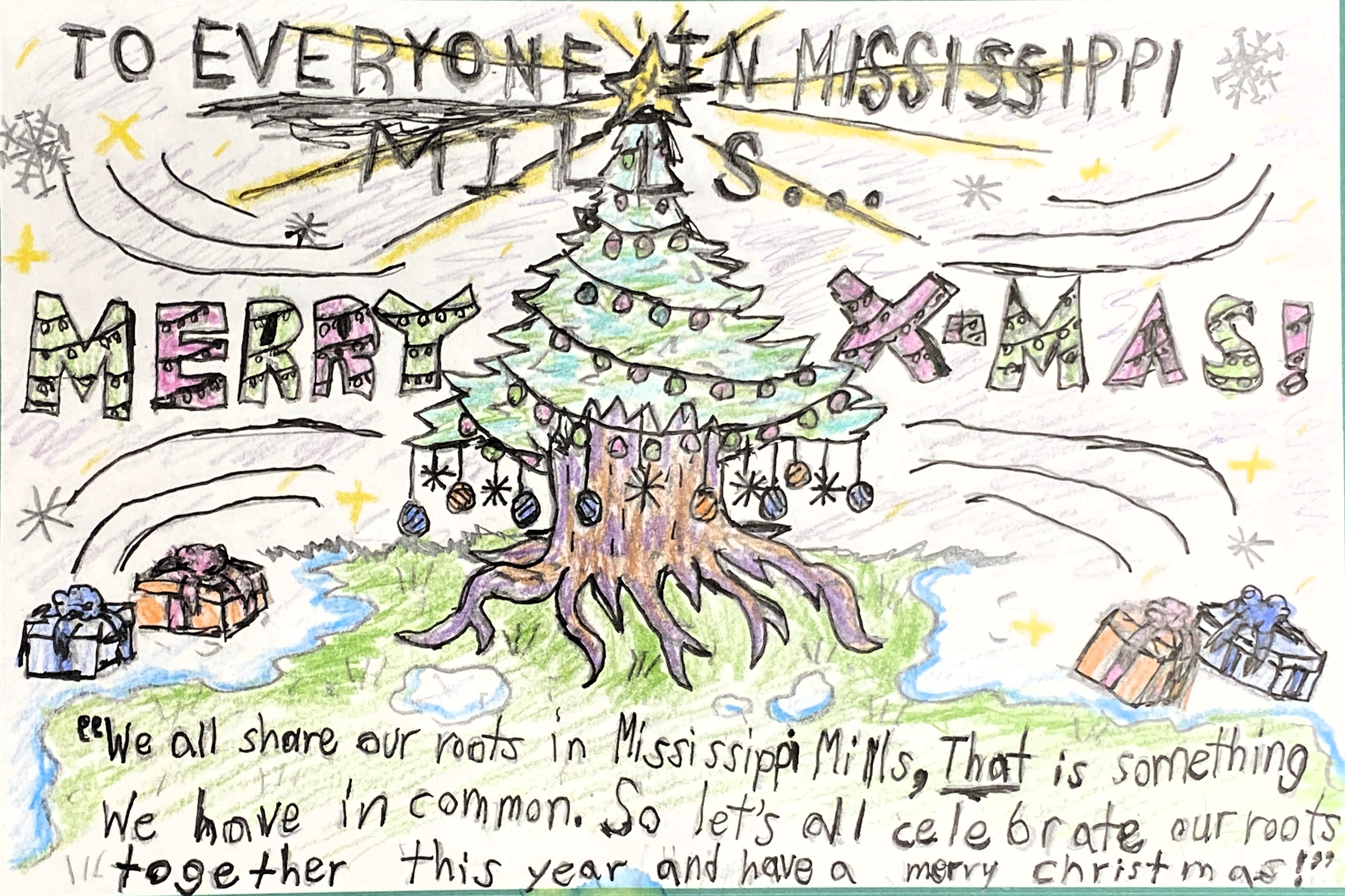 The winning design (and artist) will be featured on the Municipality of Mississippi Mills’ official 2025 Holiday Card and shared on the Municipality's and Mayor Lowry's social media channels, as well as the municipal website for the whole community to see!