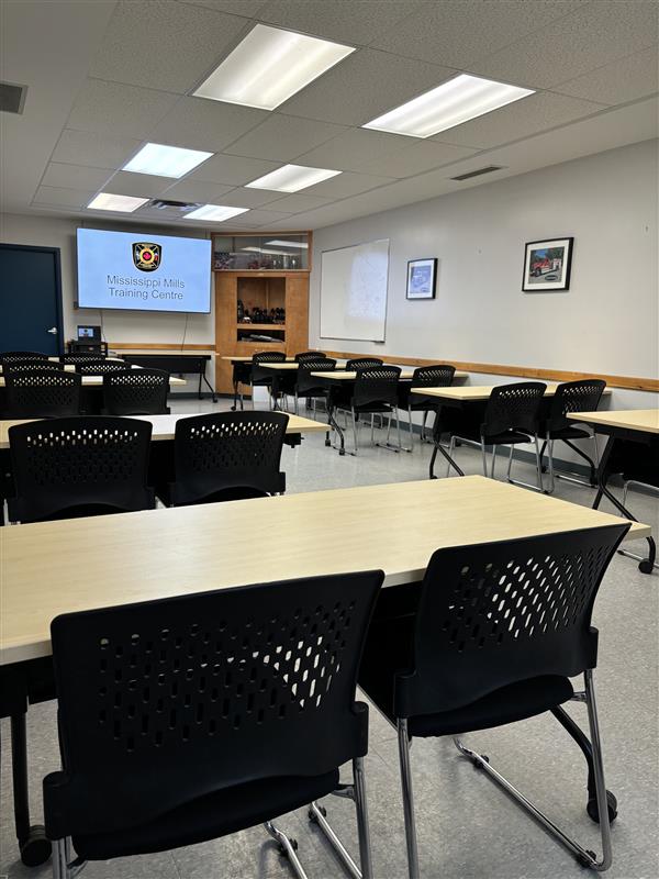 Our classroom accommodates up to 22 students and is equipped with audiovisual technology, featuring a large screen for presentations and a touch screen for interactive sessions.