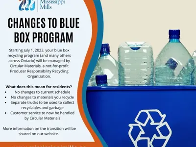 Effective July 1, 2023, the recycling program in Mississippi Mills will be managed by Circular Materials Ontario, a national not-for-profit producer committed to building efficient and effective recycling systems. Circular Materials has contracted Emterra Environmental to administer curbside recycling collection in the Municipality.